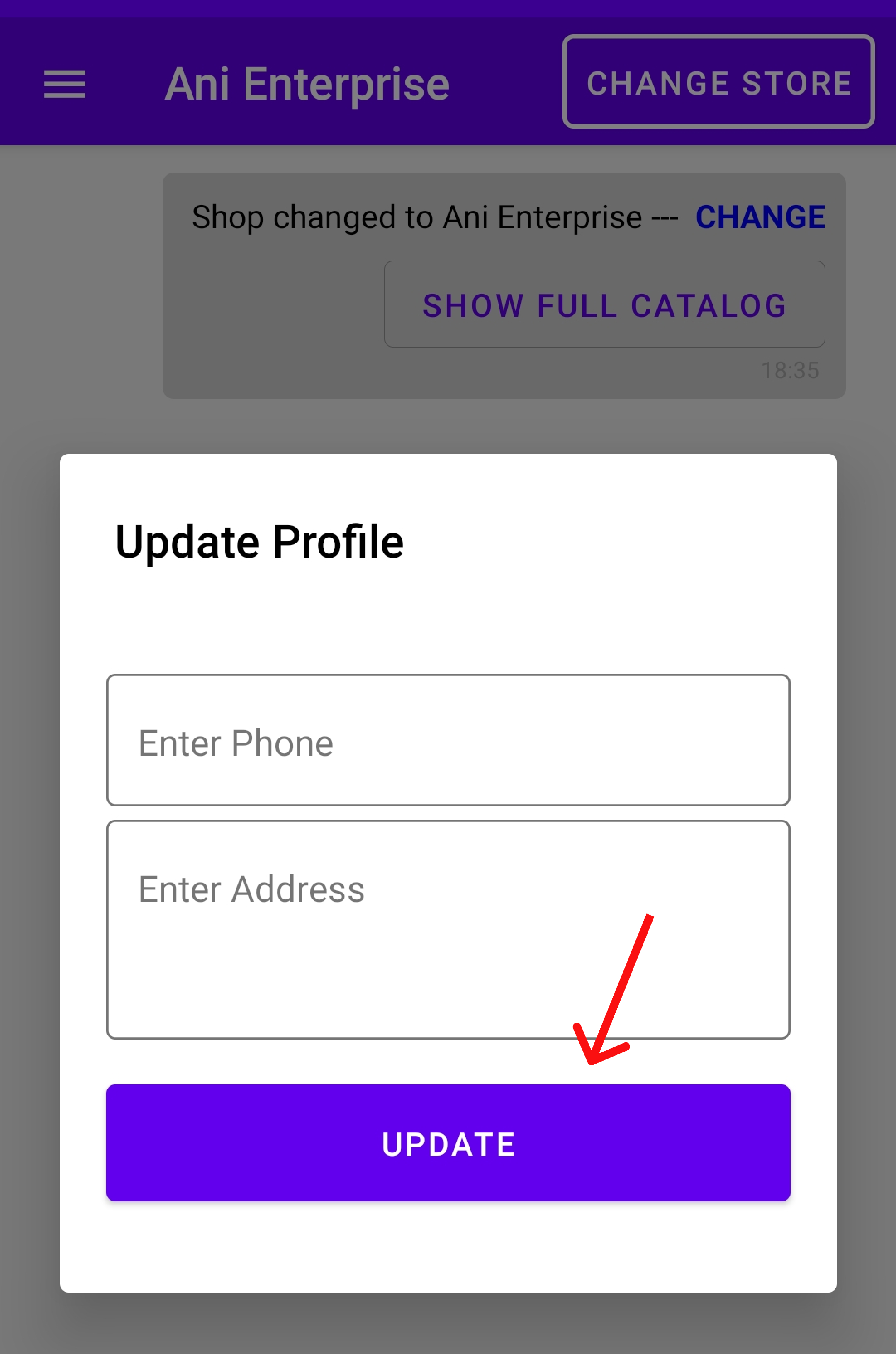 4. Enter your 'Phone No.' and 'Address' to update your profile and click the 'Update' button.