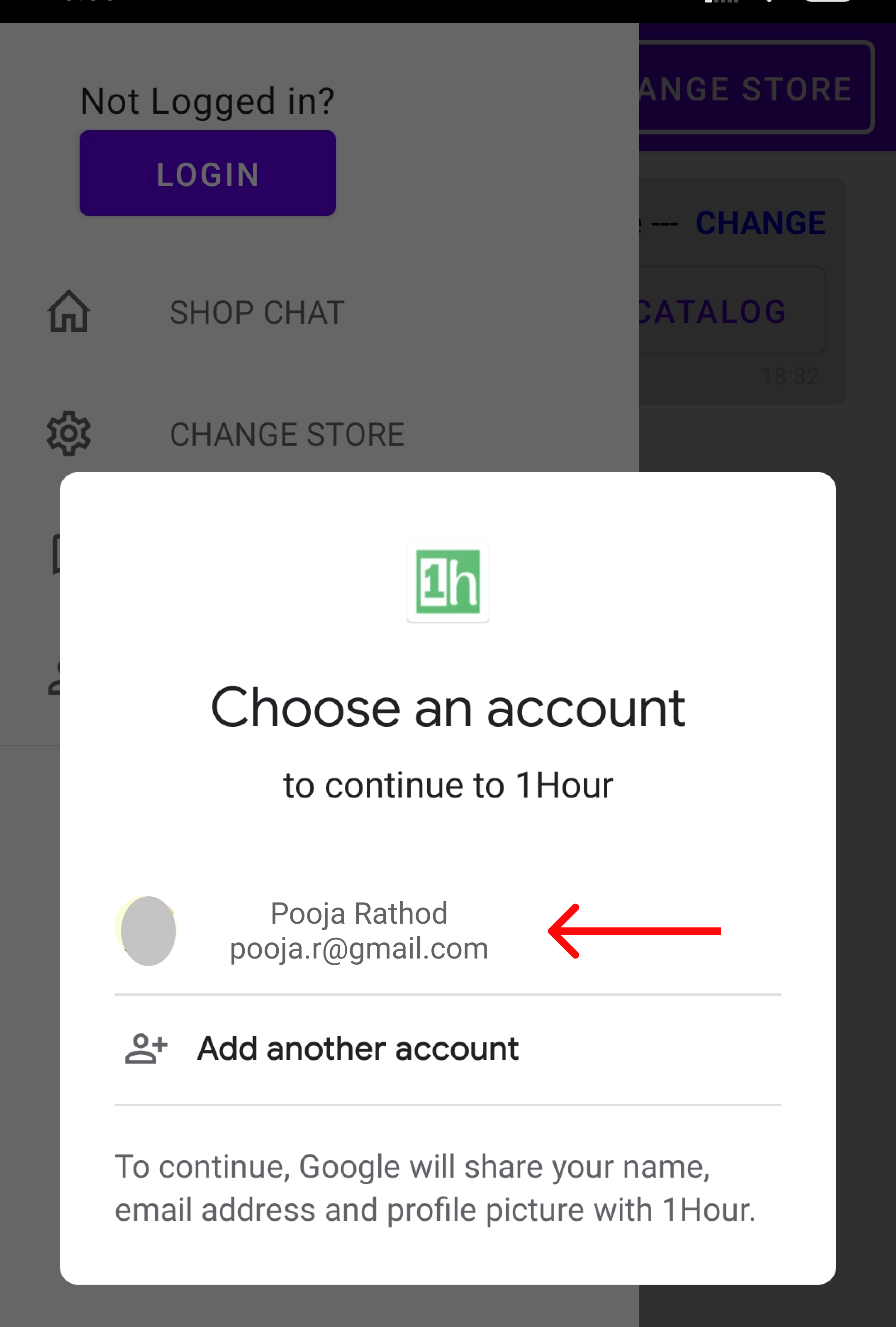 3. Choose your email id to login in the 1hour app.
